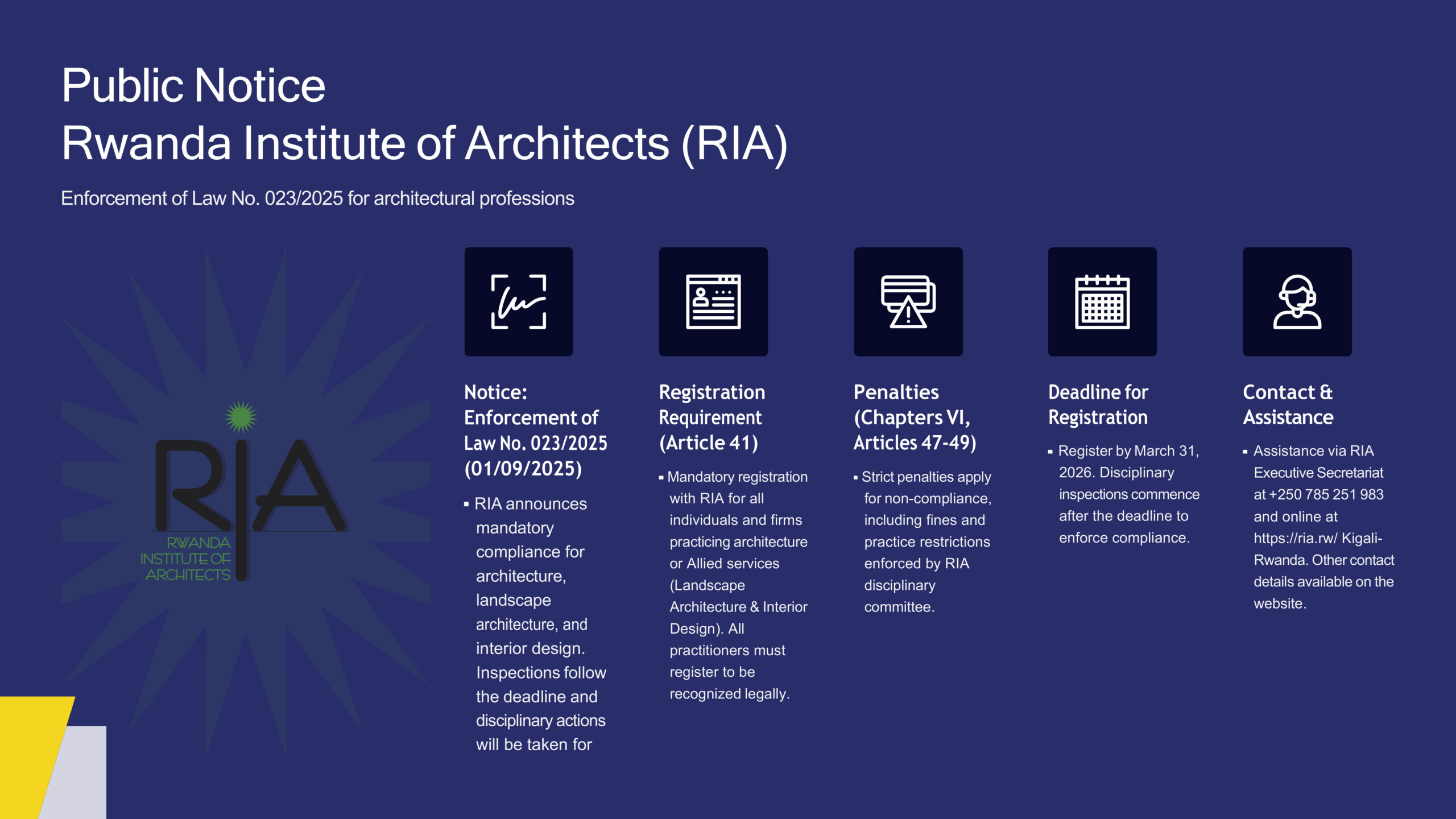 Announcements Public Notice: Enforcement of Law No. 23/2025 for Architectural Professions by ria January 19, 2026January 22, 2026 written by ria January 19, 2026January 22, 2026